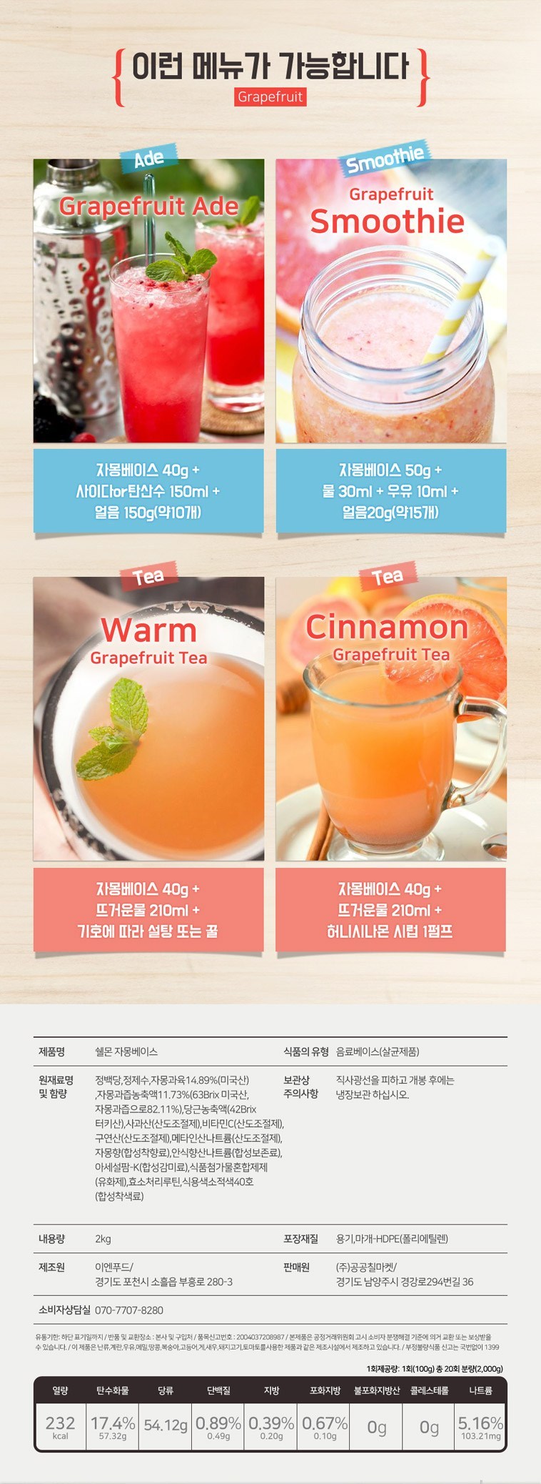 쉘몬 과일 에이드 농축액 베이스 모음 2kg